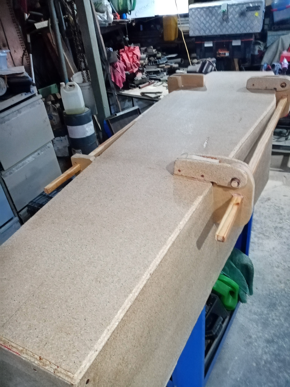 Later....  We're home and I thought that I would have a quick look at the mechanism of my favourite reclining lounge chair..... Last week the chair gave a loud snap and ceased functioning. Usually the next step is to put the chair on the burning pile for next winter.... but I thought that it might be fixable.  It turned out that a nut had come off a bolt.... and the lever mechanism had broken.  I stripped it down and went to the shed..... made some replacement parts..... and now it works better than ever!